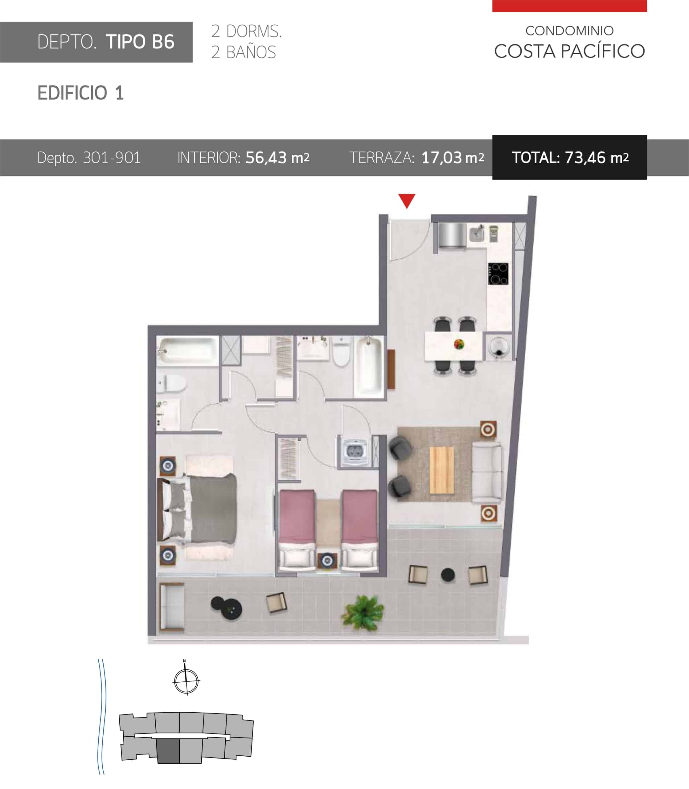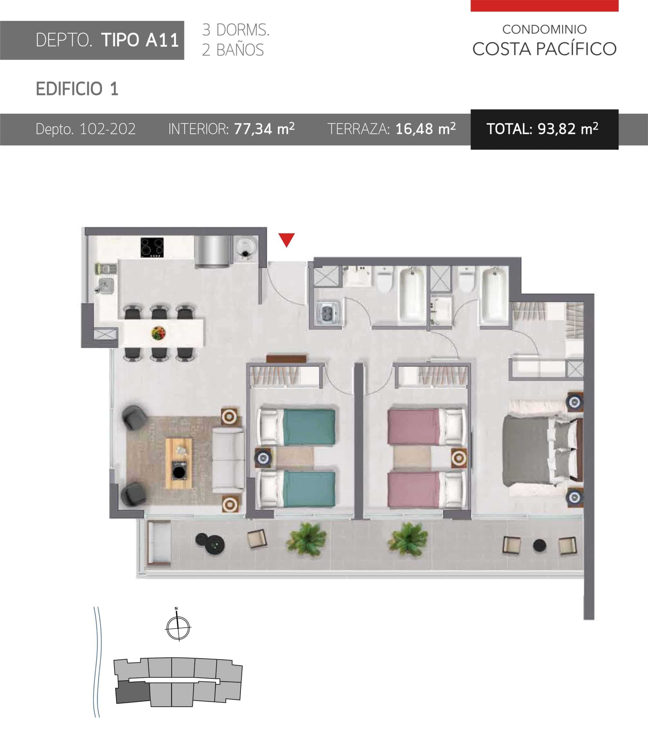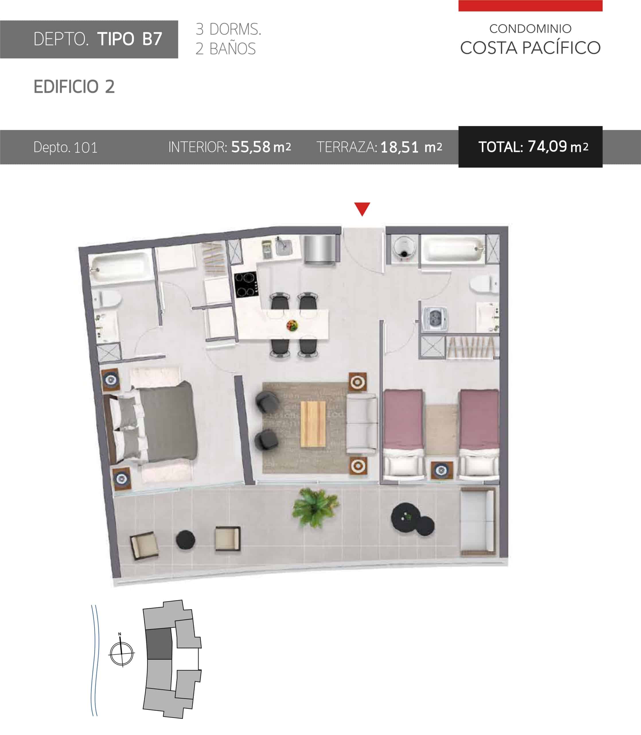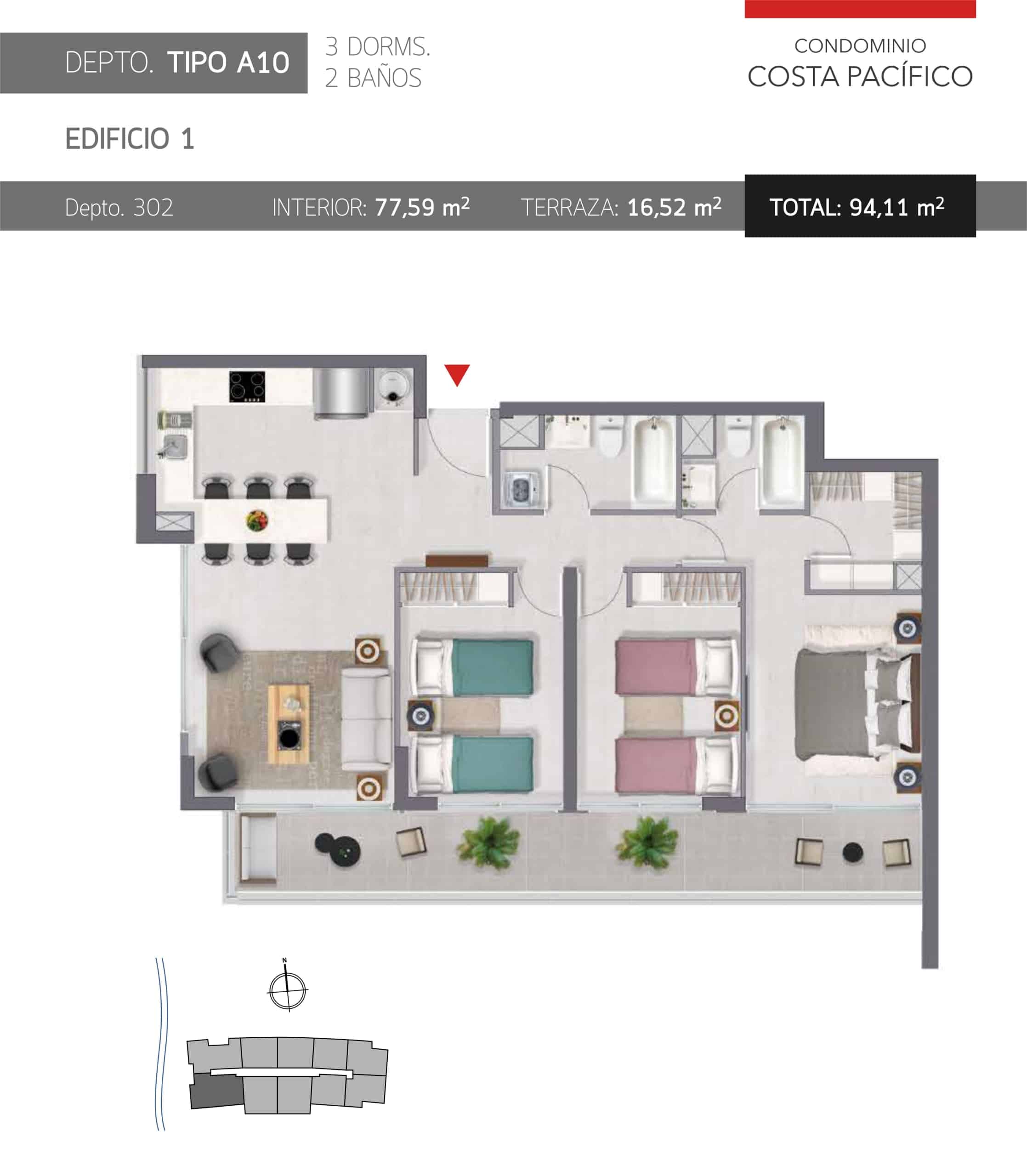 Condominio Costa Pacífico es el lugar perfecto para disfrutar en vacaciones o invertir, por su excelente ubicación a pasos de Avenida del Mar. El proyecto se encuentra emplazado en la tranquila Calle Las Higueras Poniente desde donde se puede acceder rápidamente a la playa (50 metros), y con hermosas vistas al mar.